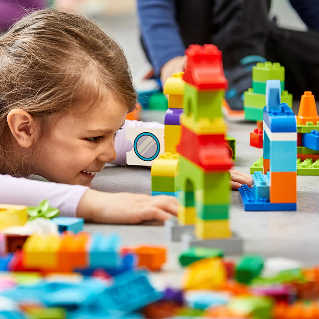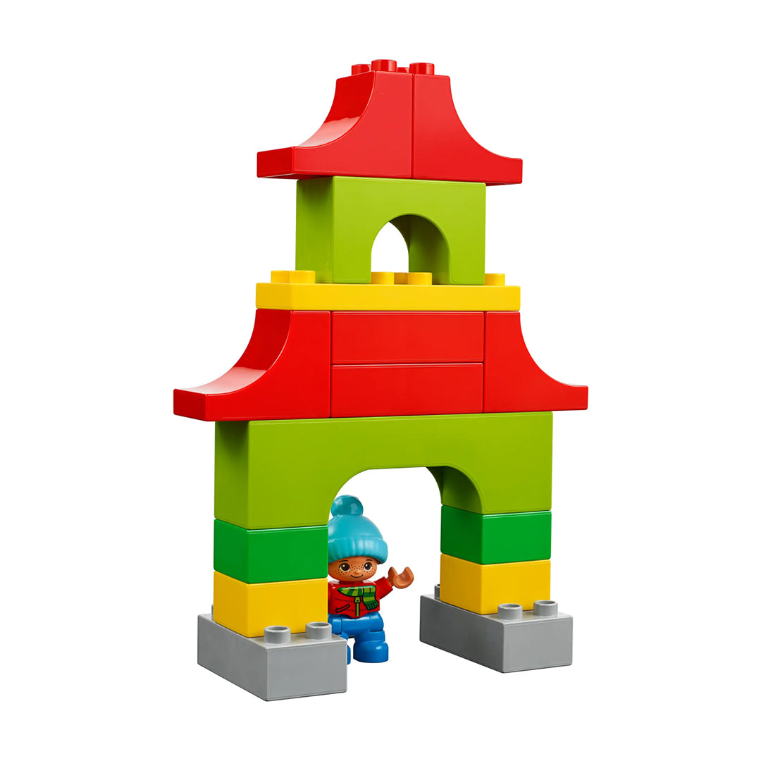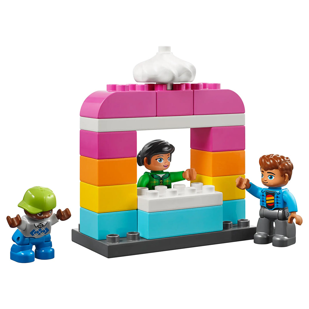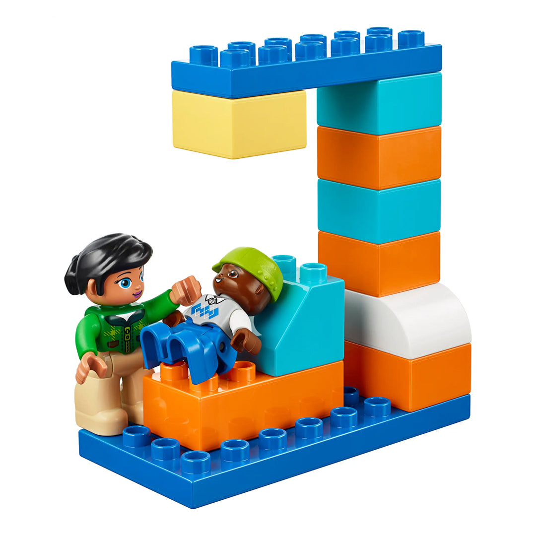Ladrillos: 480 bricks, figuras, bases de ruedas, ventanas, puertas y una placa de construcción LEGO® DUPLO®.