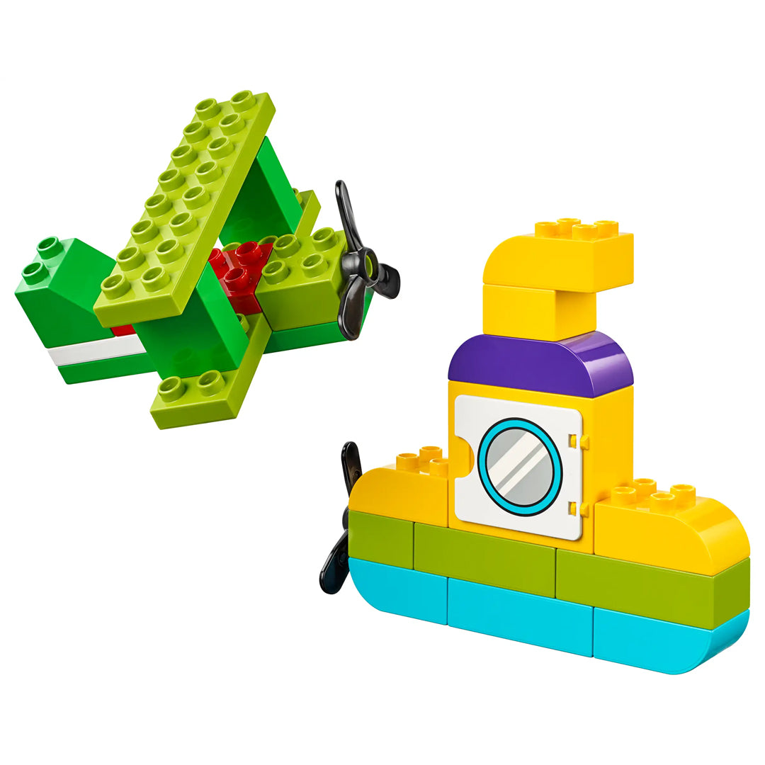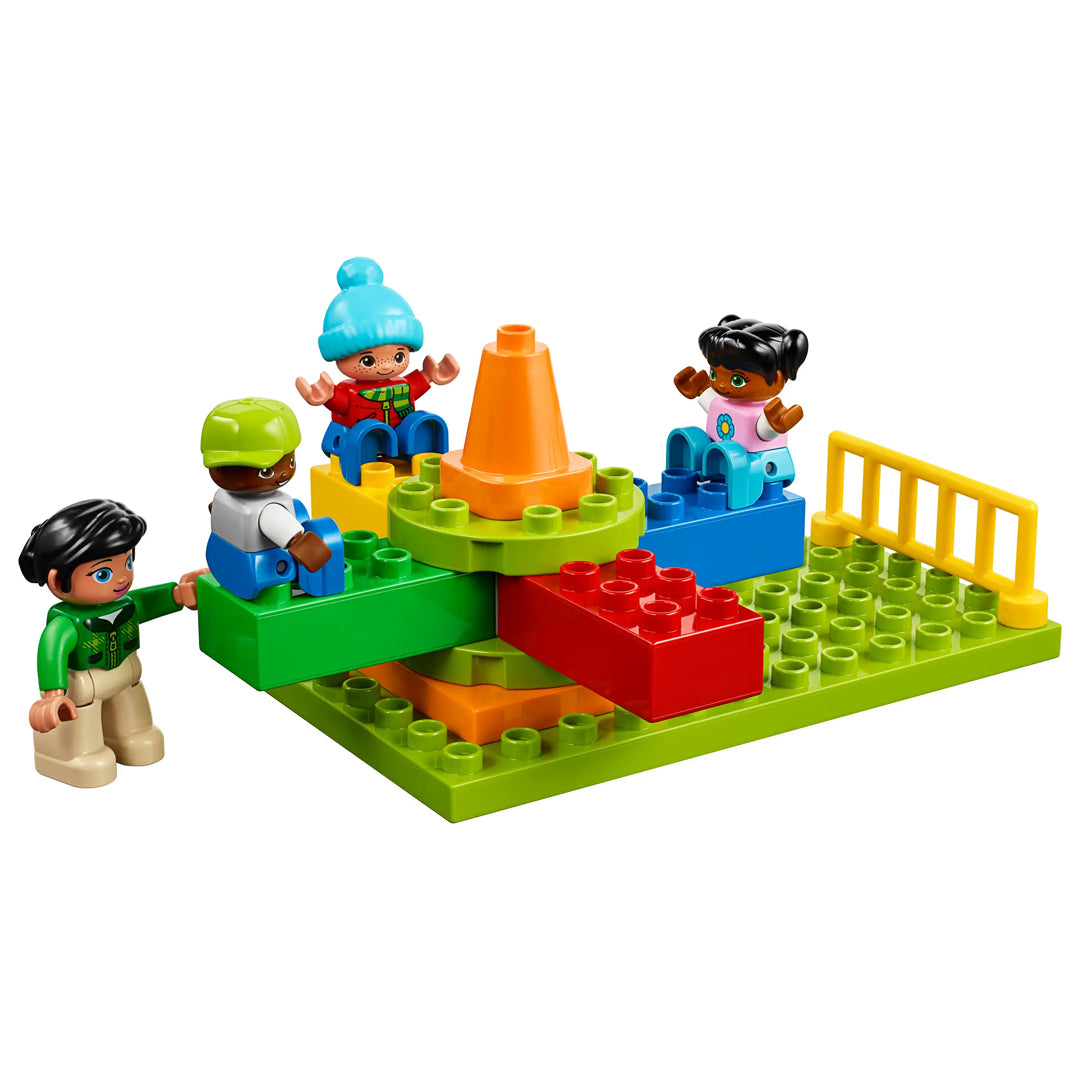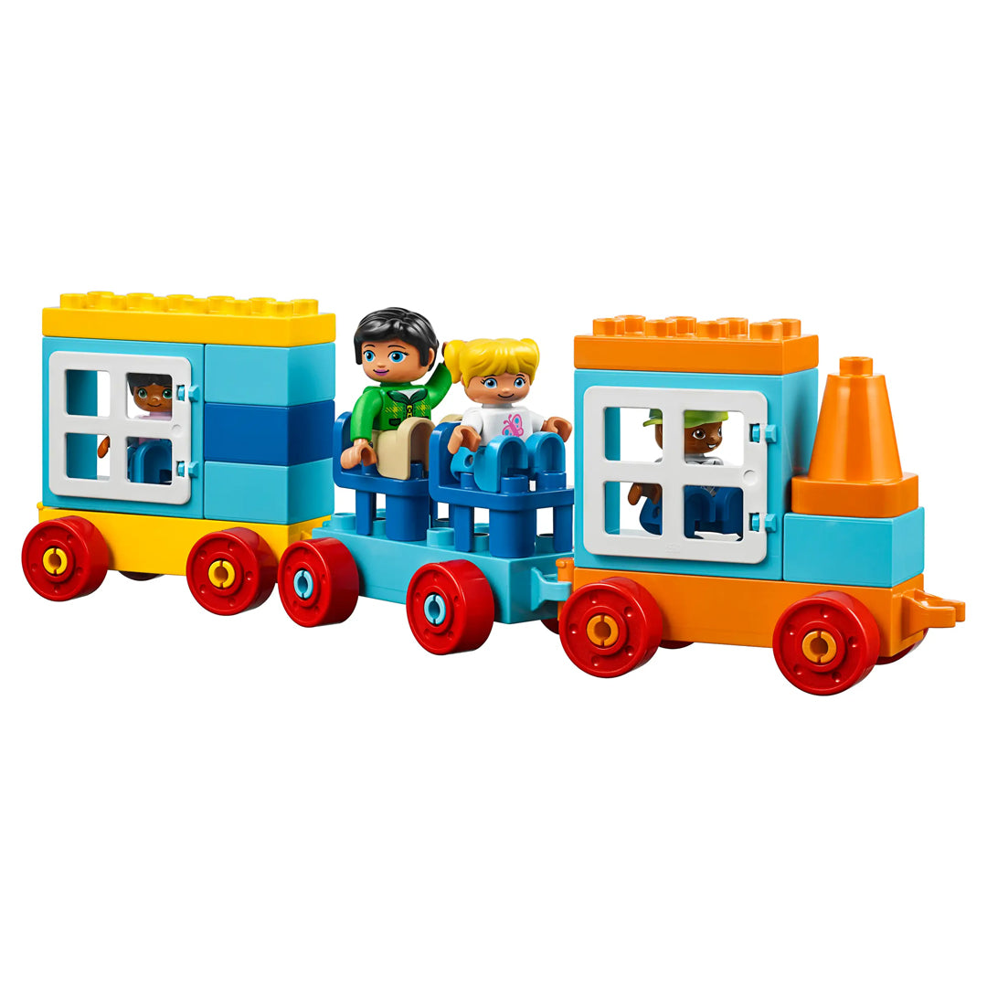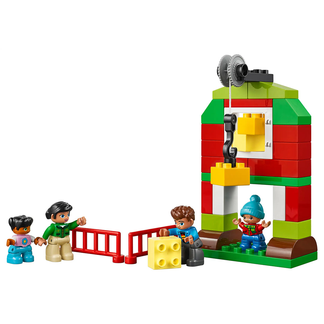 Ladrillos: 480 bricks, figuras, bases de ruedas, ventanas, puertas y una placa de construcción LEGO® DUPLO®.