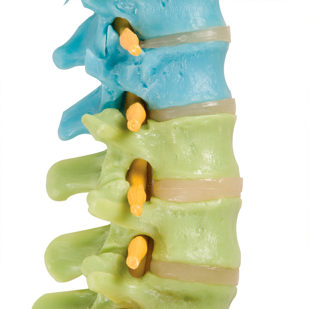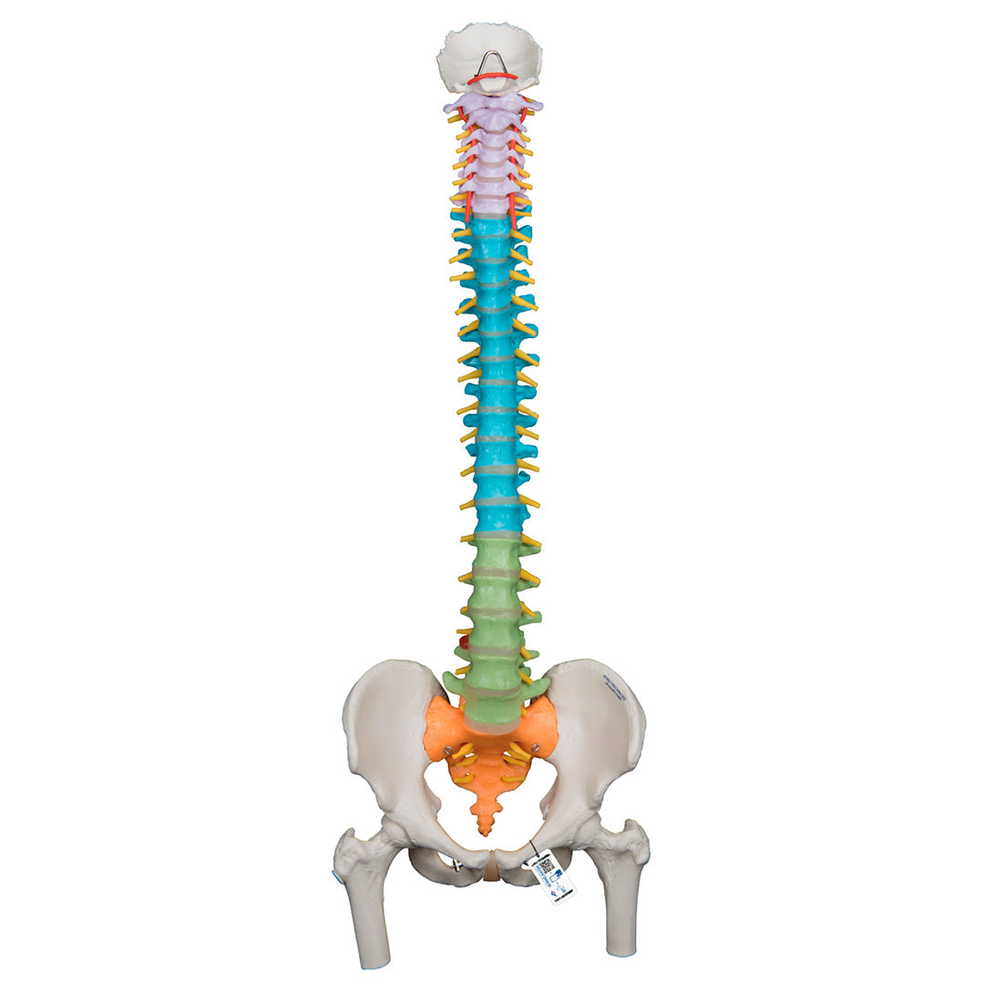 Las 5 secciones de la columna vertebral aparecen diferenciadas por color: