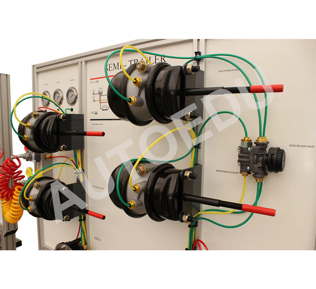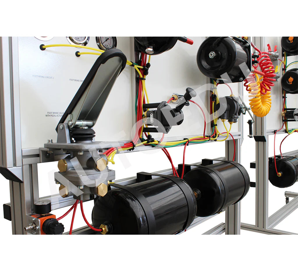 - Tablero de capacitación educativa: diseñado específicamente para que los estudiantes técnicos exploren y comprendan los componentes y operaciones de los sistemas de frenos de aire, permitiendo diversas mediciones, pruebas y procedimientos de diagnóstico.