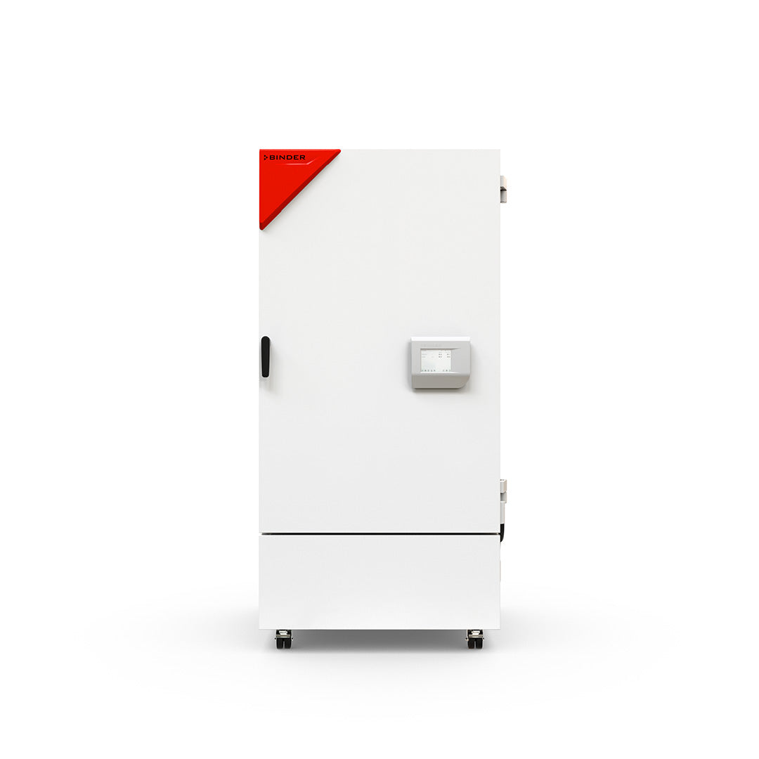Cámara de clima constante con límites ampliados de temperatura y humedad, gracias a su sofisticado equipamiento técnico, la KBF PRO domina sin problemas todo tipo de ensayos de materiales, ya sea a -20°C, en condiciones THB, a +85°C y 85% de humedad relativa. Equipo seguro y potente gracia a la innovadora tecnología de atemperación, funcionamiento a prueba de fallos a largo plazo gracias a su tecnología acreditada de compresores y a su cámara interna de acero inoxidable, triángulo señalizador con indicación luminosa de estado, panel de control ergonómico con regulador de programas de pantalla táctil y menor consumo energético gracias a la moderna tecnología de refrigeración por inversor.