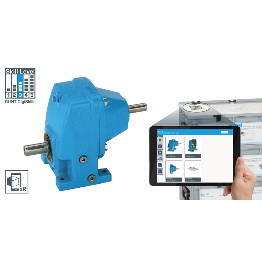 El juego de prácticas MT 120 forma parte de la GUNT Practice Line para prácticas de montaje, mantenimiento y reparación, concebida para la enseñanza en escuelas técnicas y centros de formación de empresas. El montaje y el desmontaje se pueden realizar perfectamente dentro del tiempo disponible para unidades didácticas normales. Para estos trabajos se requieren solo herramientas sencillas, que también se adjuntan. Los dispositivos de ajuste del engranaje se han diseñado de forma que todo el montaje se pueda realizar aplicando únicamente una fuerza manual.