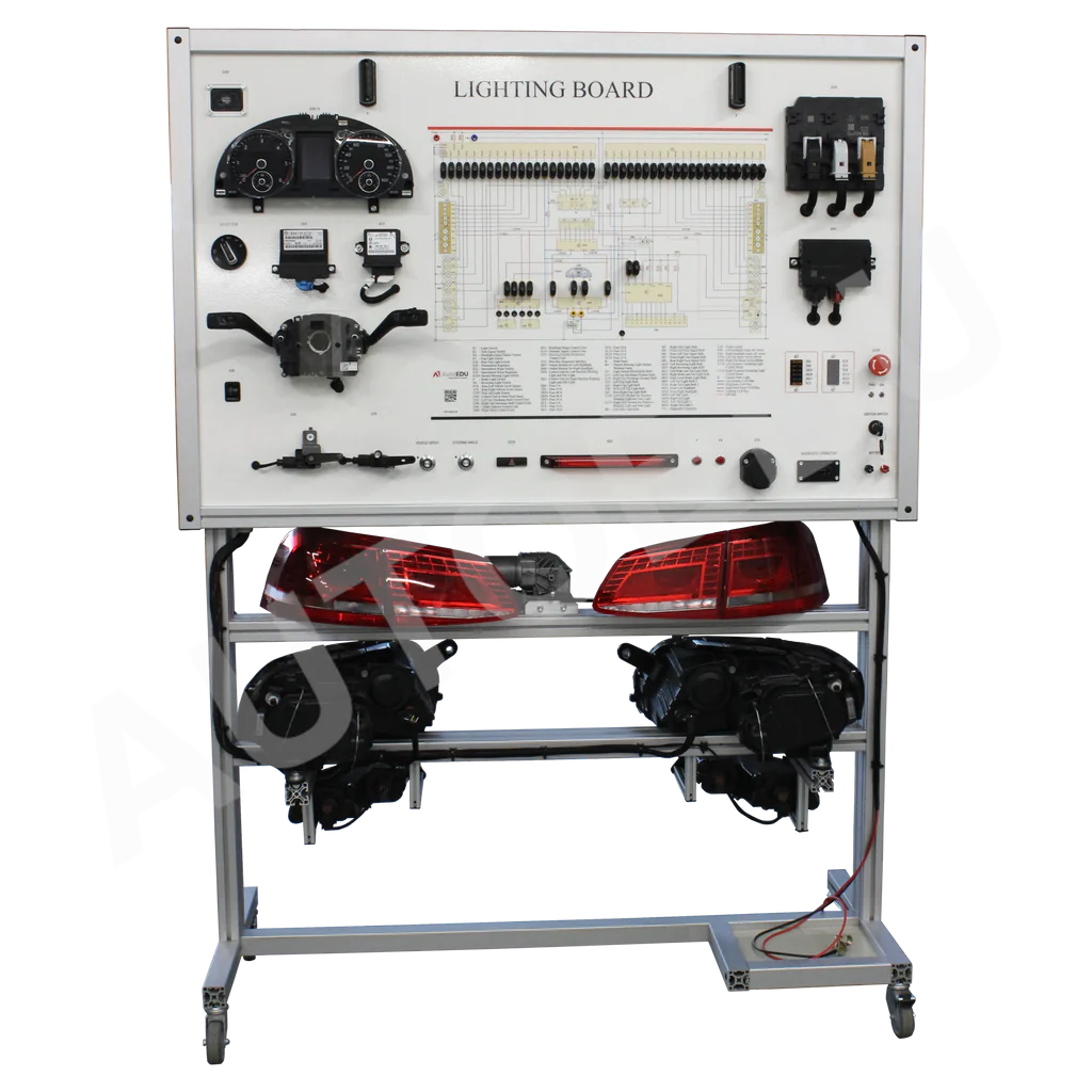 Sistema totalmente funcional diseñado para proporcionar conocimientos sobre los sistemas de iluminación y señalización de automóviles. Este soporte de formación refleja el funcionamiento de los equipos de iluminación de automóviles reales, integrado en un robusto marco de metal con ruedas de transporte para facilitar su movilidad. Ideal para entornos educativos, permite a los estudiantes supervisar, analizar y diagnosticar varios sistemas del automóvil, lo que lo convierte en una herramienta esencial para la formación en automoción.
