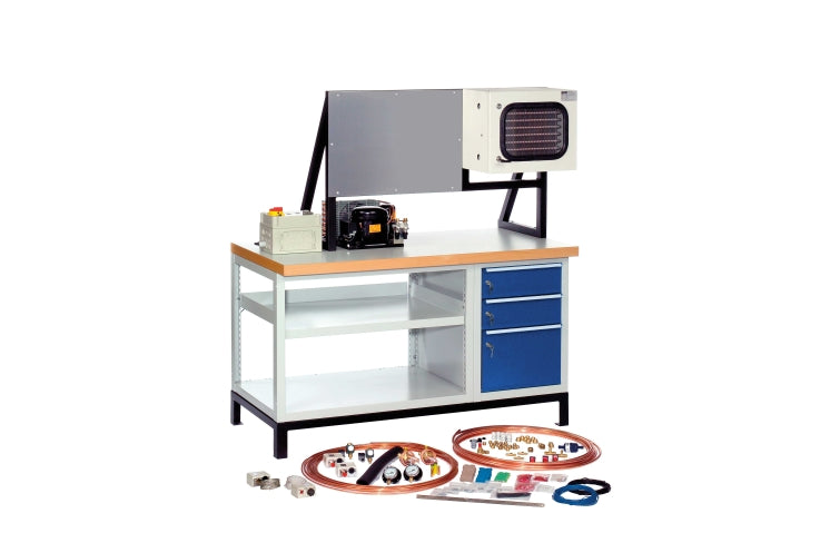 Todo el ensayo es montado en un banco de trabajo, con cajones para guardar componentes y herramientas. El panel de montaje y la cámara de refrigeración están montados sobre un bastidor. El bastidor, grupo frigorífico y armario de distribución están atornillados fijamente a la superficie de trabajo del banco de trabajo. Los componentes eléctricos y del proceso de refrigeración son fijados en el panel de montaje de aluminio.