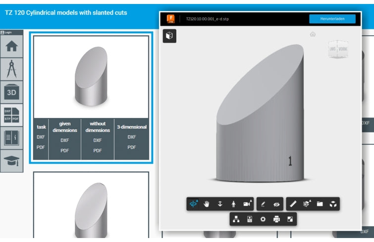 El material didáctico multimedia de diseño moderno está disponible en línea en el GUNT Media Center. La parte fundamental es un conjunto completo de dibujos en forma de archivo (DXF, STEP, PDF) para cada modelo. Una selección de diferentes hojas de trabajo con soluciones completa el material didáctico.